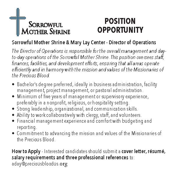 Administrative Assistant – chris@sorrowfulmothershrine.org