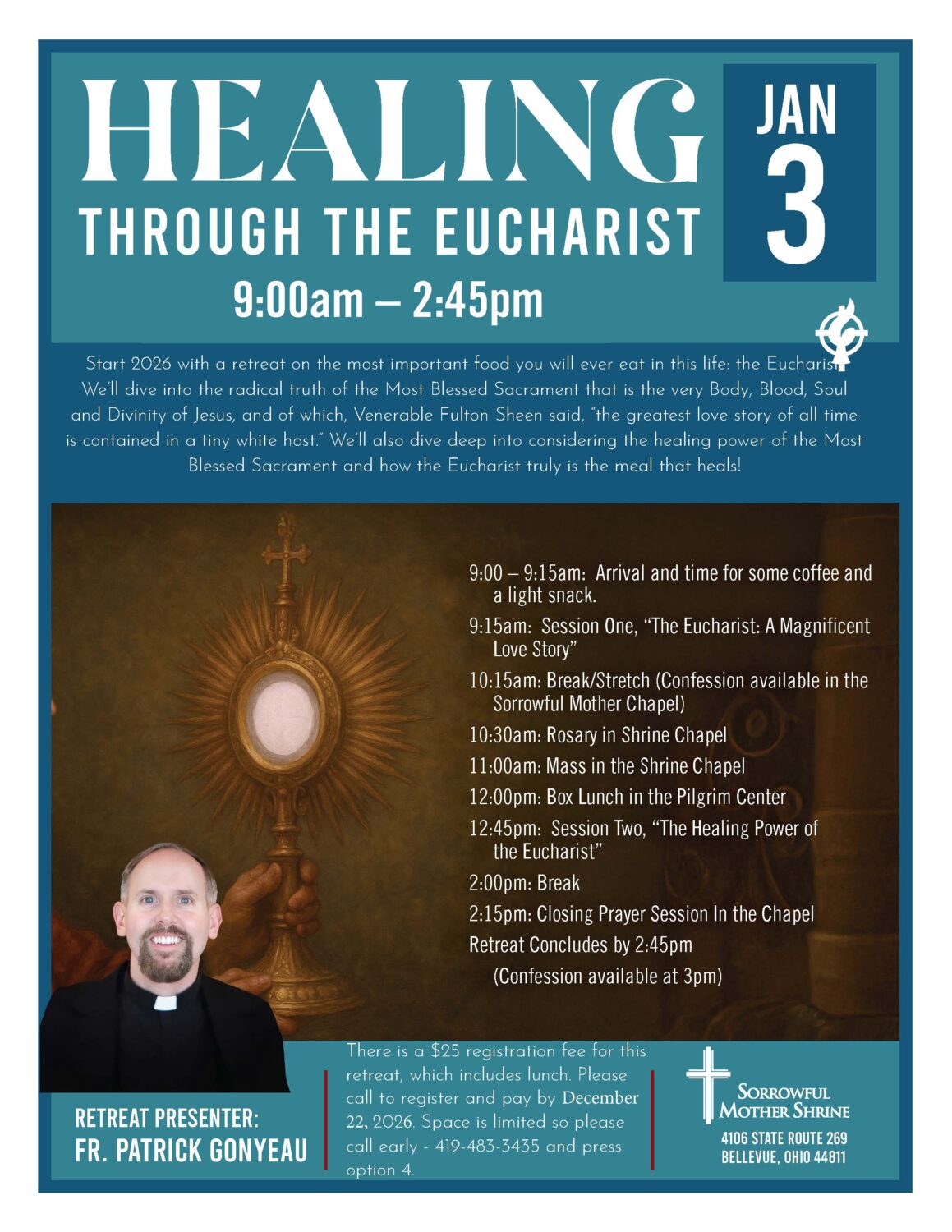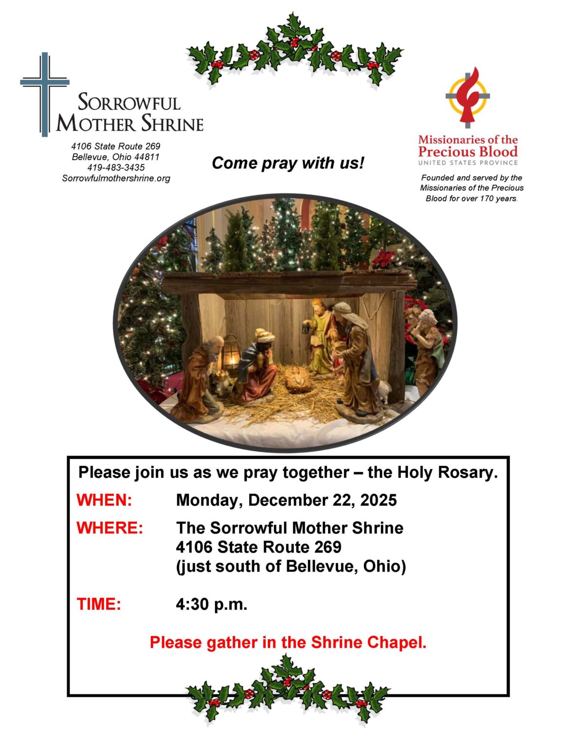 To schedule a pilgrimage, call the Shrine office – 419-483-3435 option 4 or email – shelley@sorrowfulmothershrine.org