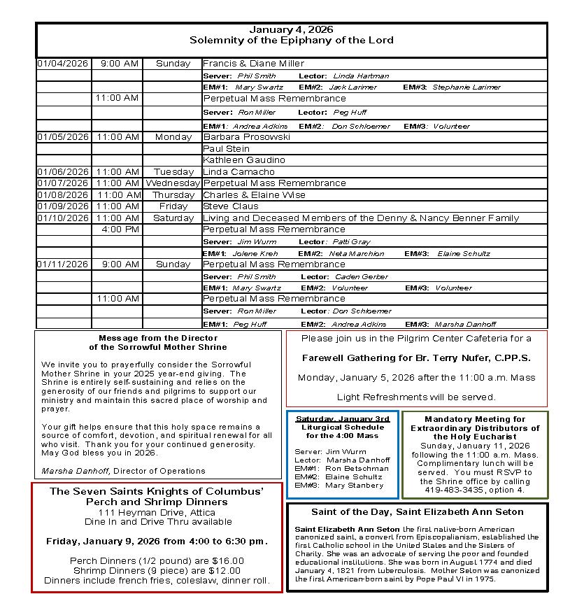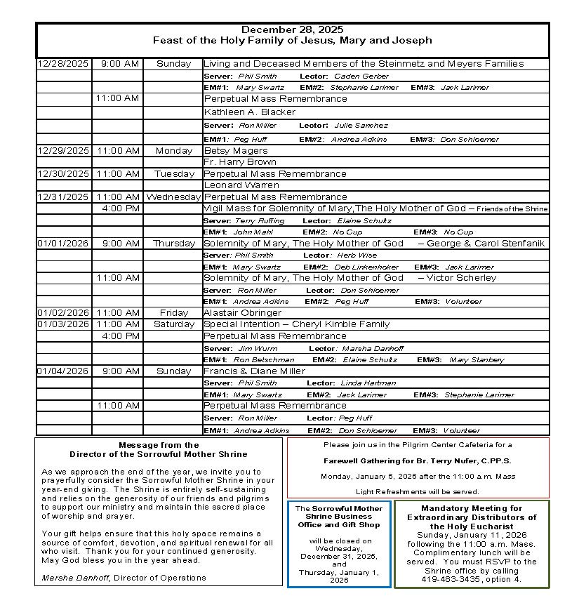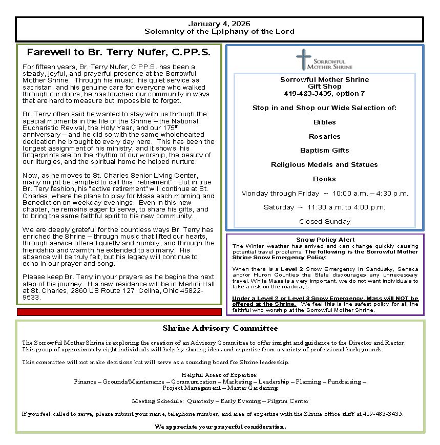 Sorrowful Mother Shrine – Weekly Bulletins Weekly Bulletin – January 4, 2026 Weekly Bulletin – December 28, 2025