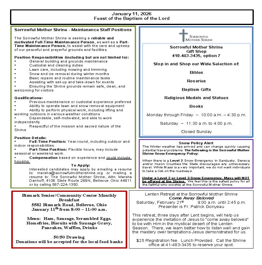 Sorrowful Mother Shrine – Weekly Bulletins